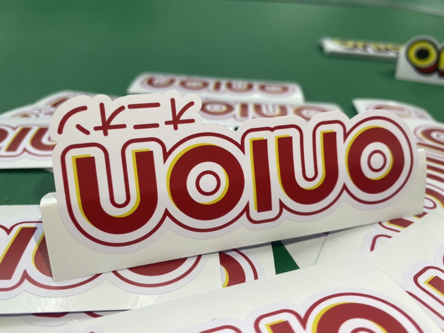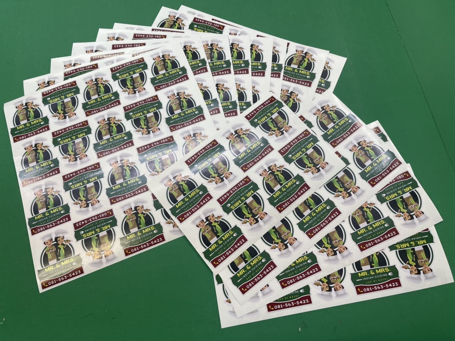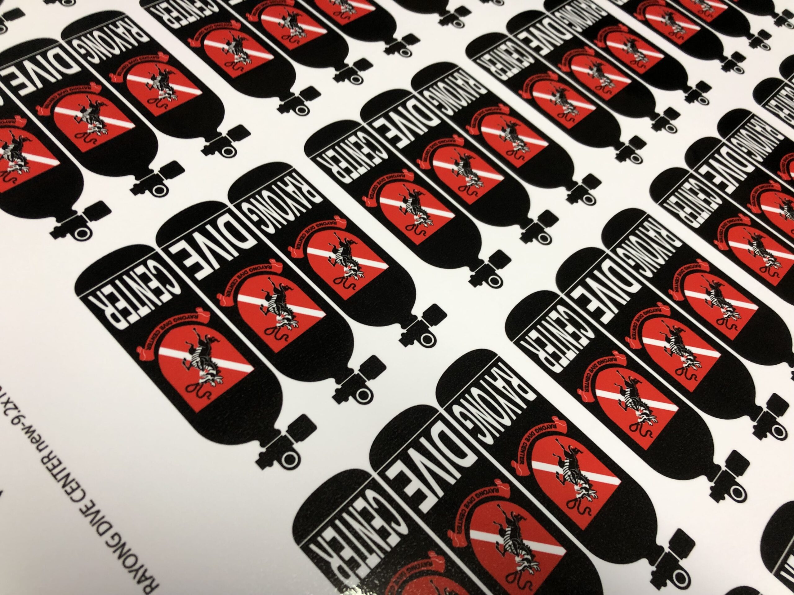 ภายหลัง สั่งทำสติ๊กเกอร์โลโก้ โดยวัสดุที่เลือกเป็นสติ๊กเกอร์ใสรองน้ำหมึกขาวที่นอกจากติดบรรจุภัณฑ์ ยังสามารถนำมาใช้ติดกระจกสถานประกอบการต่าง ๆ ในลักษณะของการขยายโลโก้ให้มีขนาดใหญ่แล้วนำมาติดผนังกระจก ตามจุดต่าง ๆ ทว่ามักนิยมนำสติ๊กเกอร์มาติดตรงประตูทางเข้าออกเสียมากกว่า รวมถึงข้อมูลอื่น ๆ เช่น เวลาทำการ ช่องทางติดต่อ รวมถึง ภาพประกอบ ซึ่งทั้งหมด จะบรรจุอยู่ในสติ๊กเกอร์แผ่นใหญ่ที่ในปัจจุบัน จะเป็นงานพิมพ์อิงค์เจ็ท HP Latex หรืองานพิมพ์ออฟเซ็ท ทั้ง 2 แบบ สามารถพิมพ์สติ๊กเกอร์ขนาดใหญ่ได้